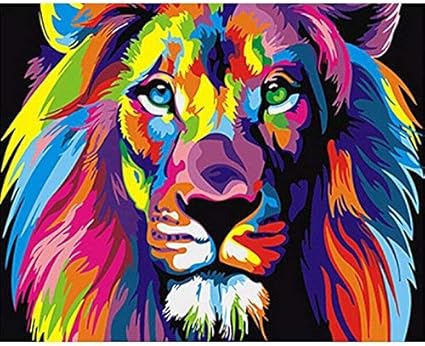 Painting by Numbers Kit for Adults,Oil Canvas Paint for Kids or Beginner DIY Acrylic Paints Kit with Brushes Drawing Pigment (Lion, Frameless): Amazon.co.uk: Kitchen & Home